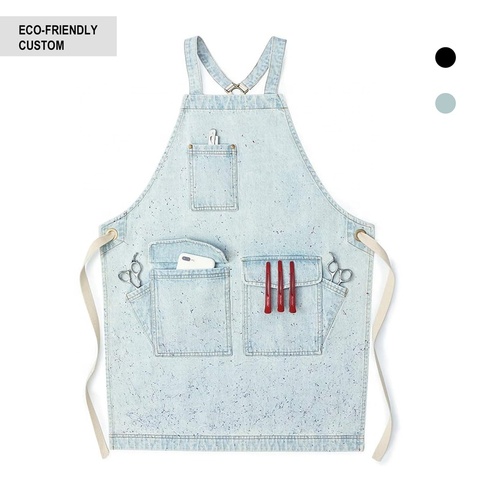 Kefei ผ้ากันเปื้อนผ้ายีนส์พร้อมกระเป๋า5ช่องสำหรับช่างทำผมผู้หญิงเครื่องมือช่างทำผมผ้าเดนิมเป็นมิตรกับสิ่งแวดล้อม